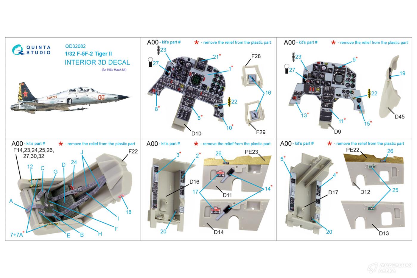 - Декаль интерьера кабины F-5F-2 (KittyHawk)
