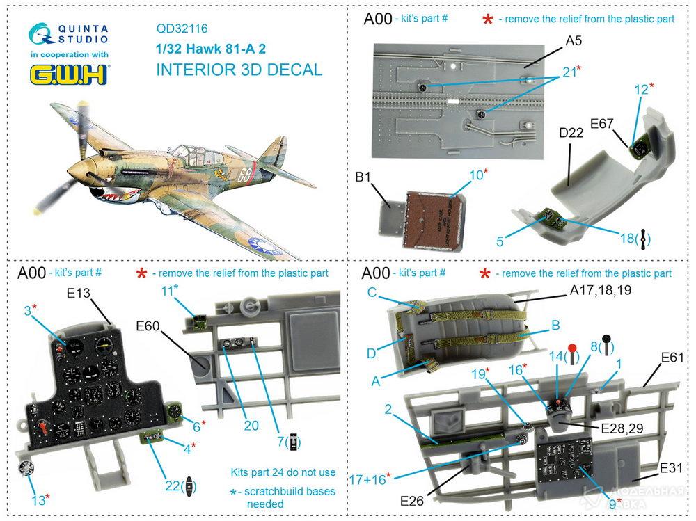 - Декаль интерьера кабины Hawk 81-A2 (GWH)