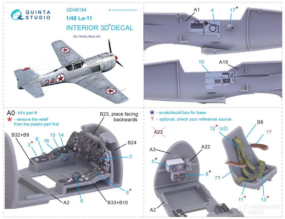 - Декаль интерьера кабины Ла-11 (HobbyBoss)