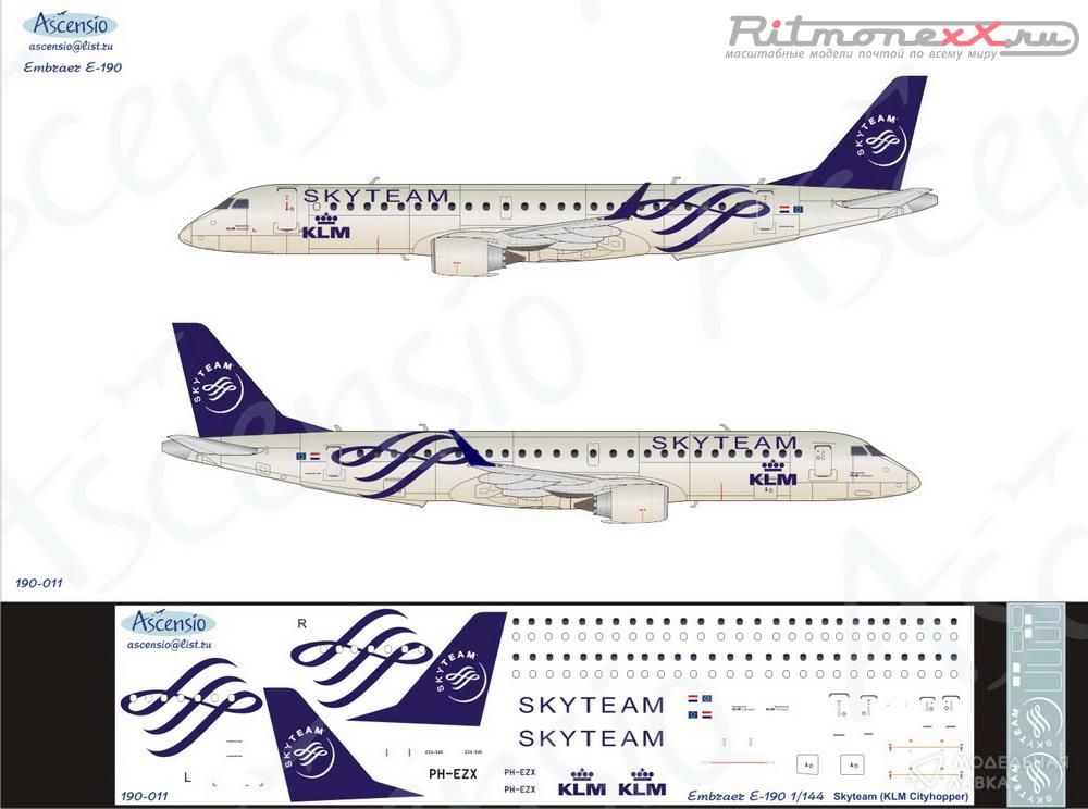 Декаль на самолет Embraer 190 Skyteam (KLM Cityhopper)
