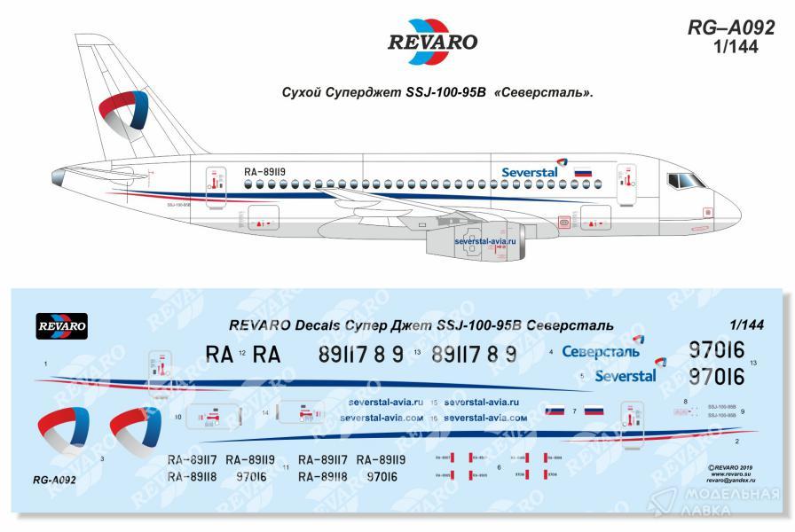 Декаль на Sukhoi Super Jet SSJ-100-95B авиакомпании Северсталь , борта RA-89119, RA-89118 и RA-89117 (он же 97016).