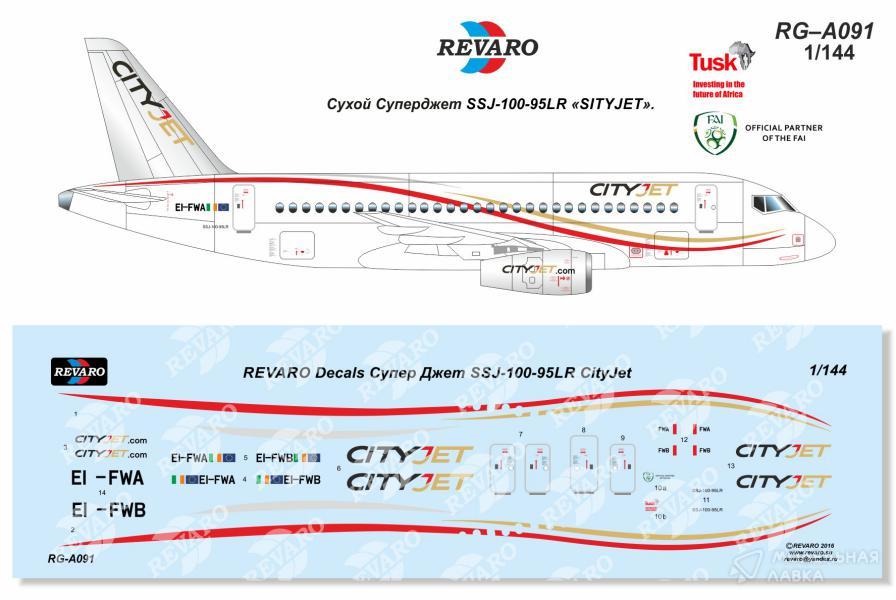 Декаль на Sukhoi Super Jet SSJ-100-95LR ирландской авиакомпании SityJet, борта EI-FWA и EI-FWB.