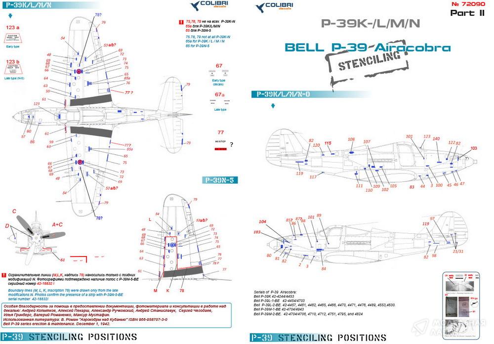 - Декали для Bell Р-39 Stenciling Part II (P-39 K,L,M,N)