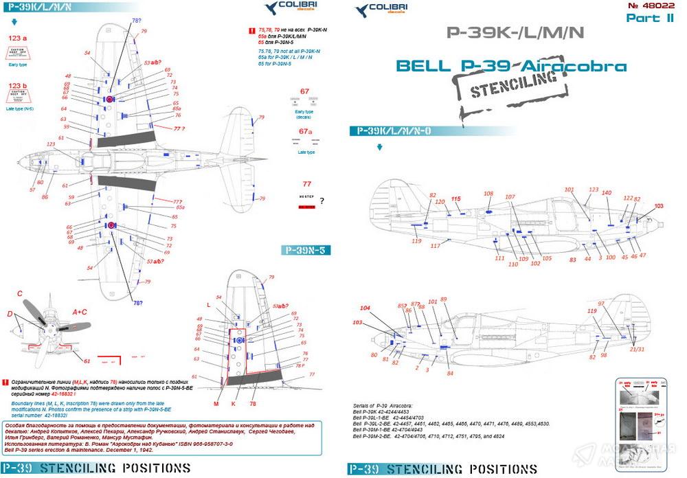 - Декали для Bell Р-39 Stenciling Part II (P-39 K,L,M,N)
