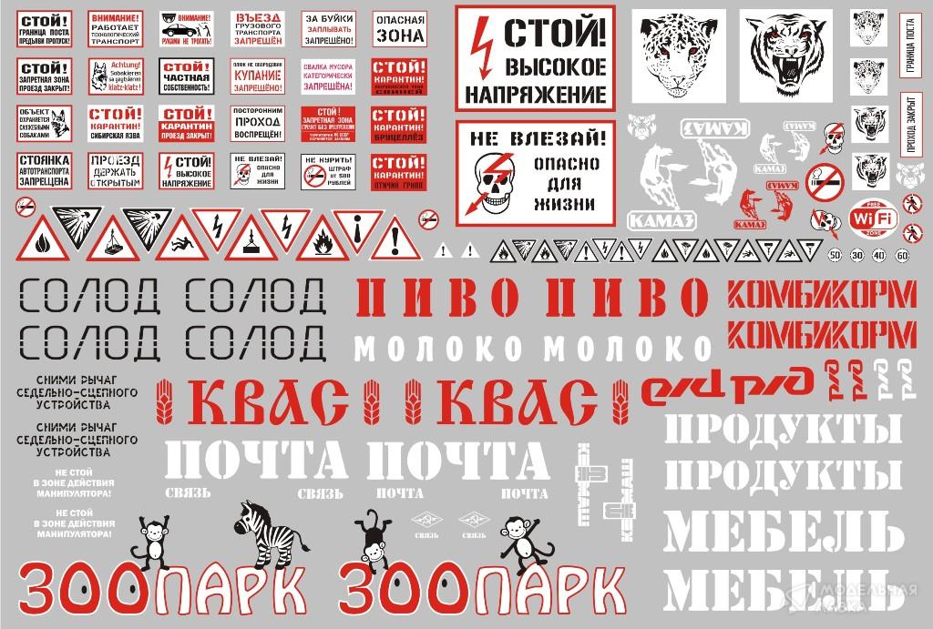 - Декали для цистерн и фургонов; информационные таблички, декали для спойлера и кабины, А5