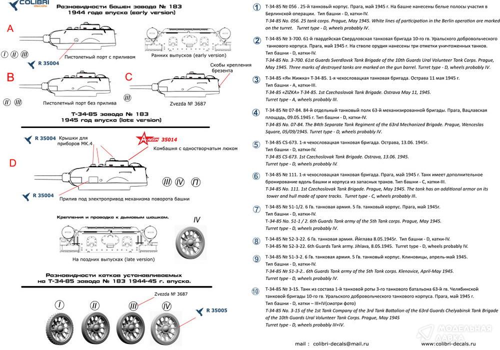- Декали для Т-34-85 factory 183 (Прага 1945)