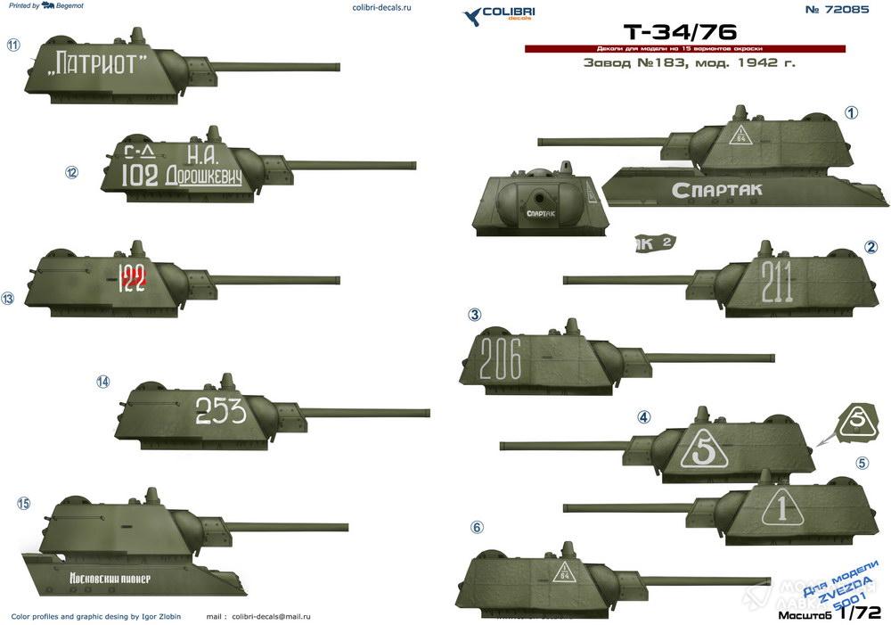 - Декали для Т-34/76 мод.1942г., Завод 183