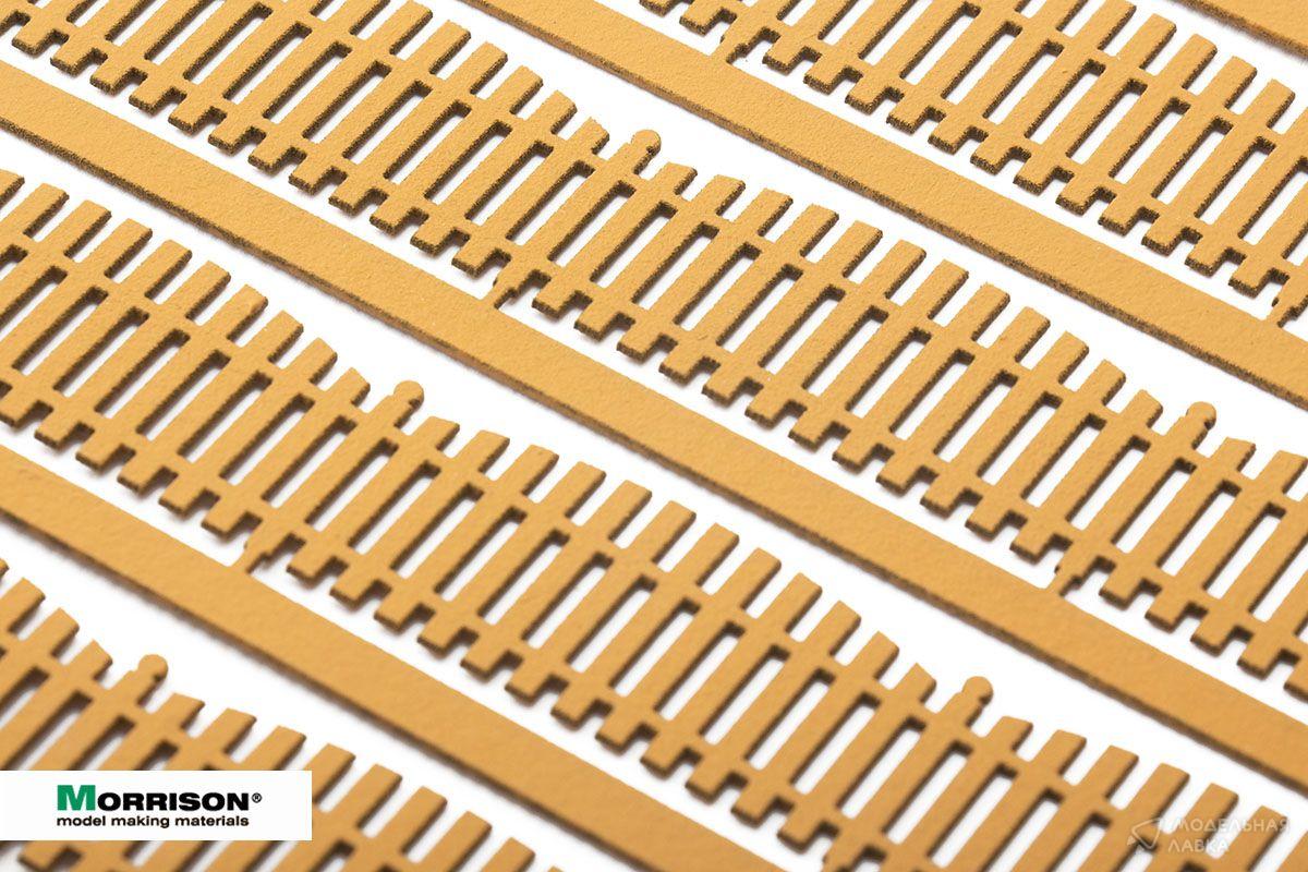 Деревянный забор-штакетник фигурный (высота 2 см). Общая длина в наборе 74 см.