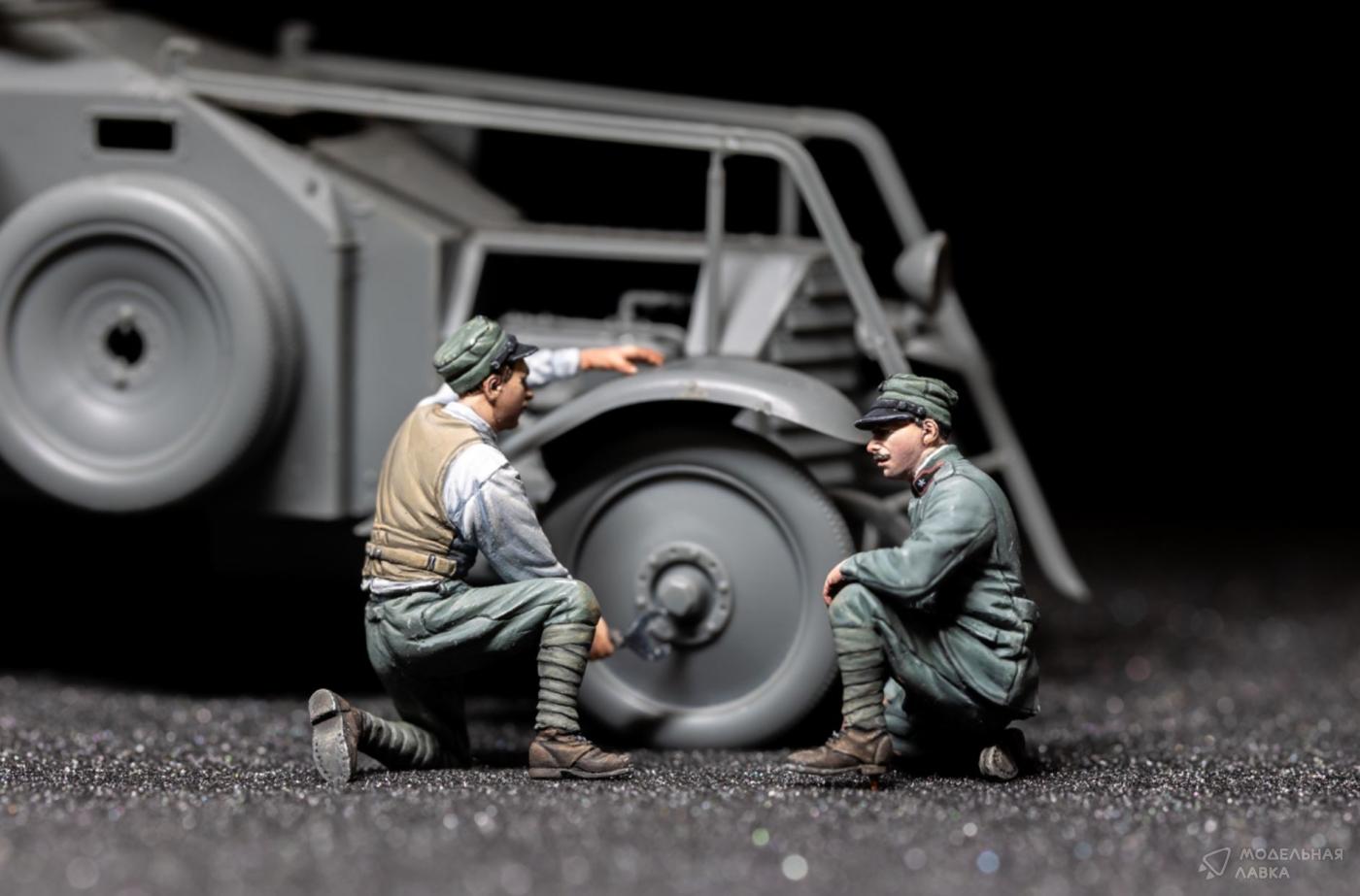- Экипаж итальянского броневика меняет шину