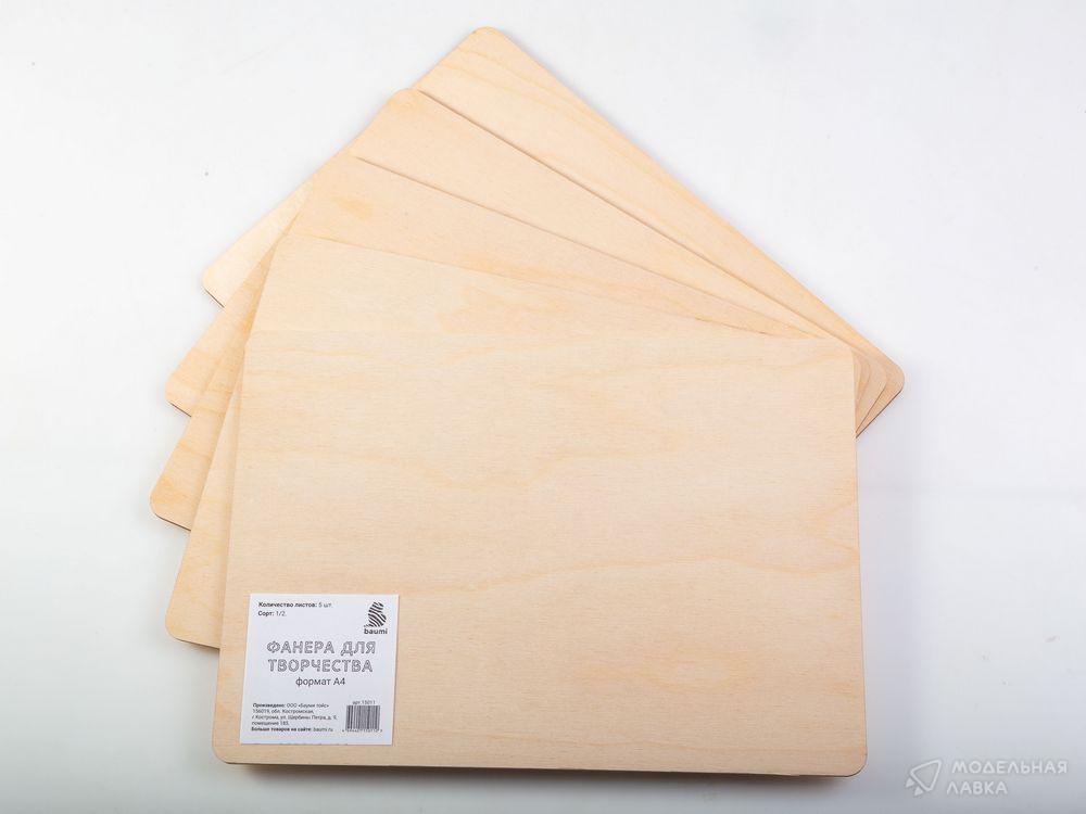 Фанера для творчества А4, сорт 1/2 - 5 листов.