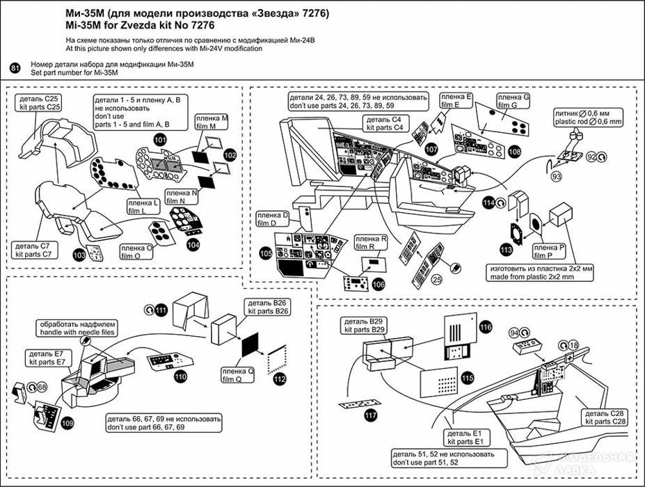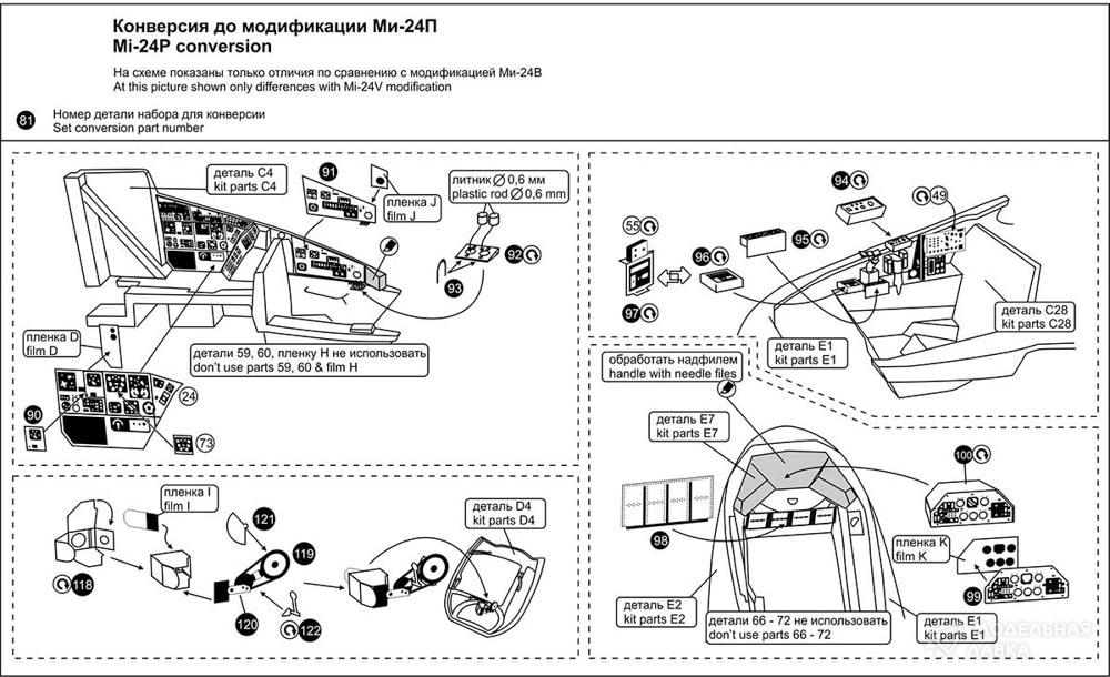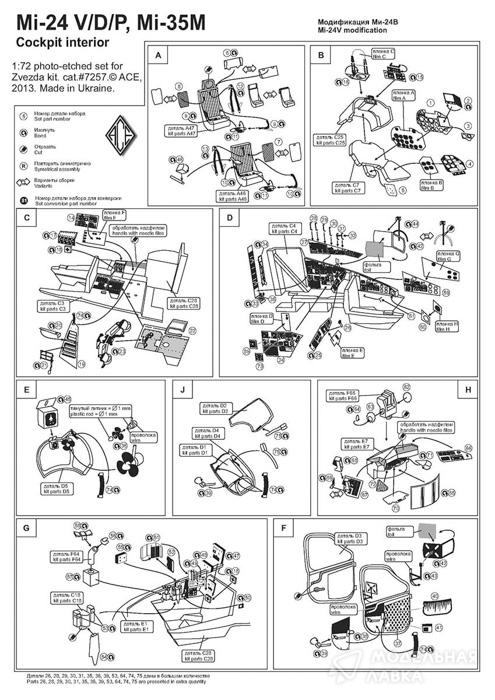 - Фототравление: набор для Ми-24 В/Д/П, Ми-35М интерьер пилотской кабины