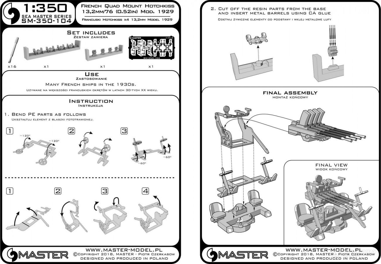 French Quad Mount Hotchkiss 13,2 мм / 76 (0,52 дюйма) Модель 1929 - (смола, полиэтилен и токарные детали) - (4 шт.)