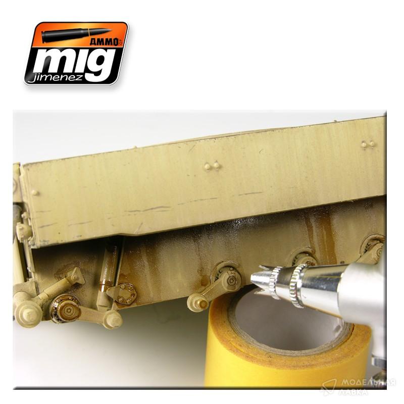Эмалевая смесь для создания природных эффектов. Светло-янтарная смесь после нанесения обрабатывается сатиновым лаком. Может использоваться отдельно, или в сочетании с другими смесями для создания реалистичных подтеков топлива. Наносится кистью под различными углами и с разной интенсивностью.
