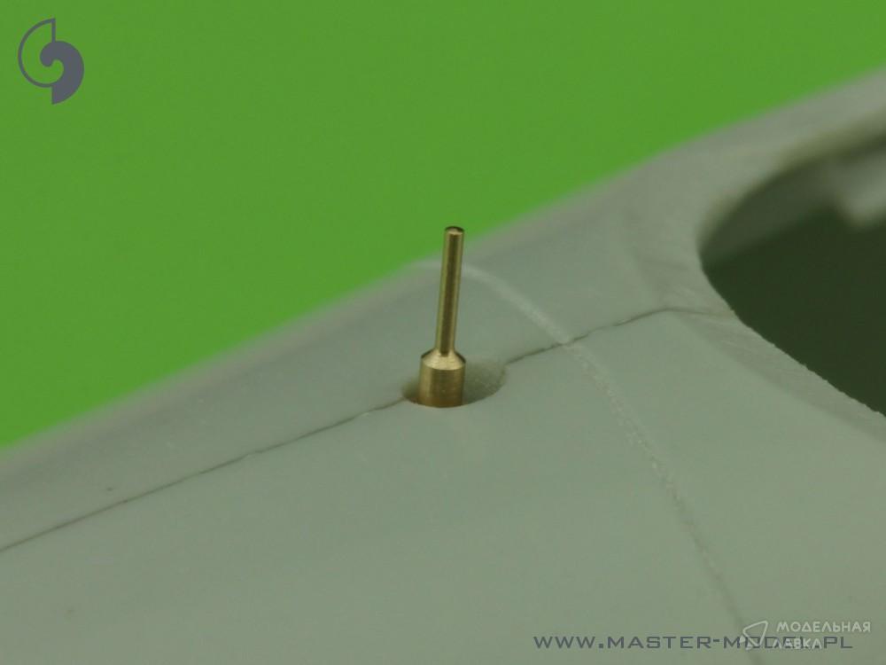В комплект входят точеные латунные наконечники стволов MG 151, индикатор передней опоры и трубка Пито. Подходит для комплектов Revell.