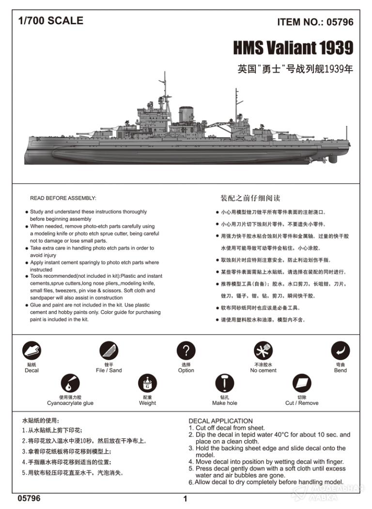 - Сборная модель HMS Valiant 1939 Version