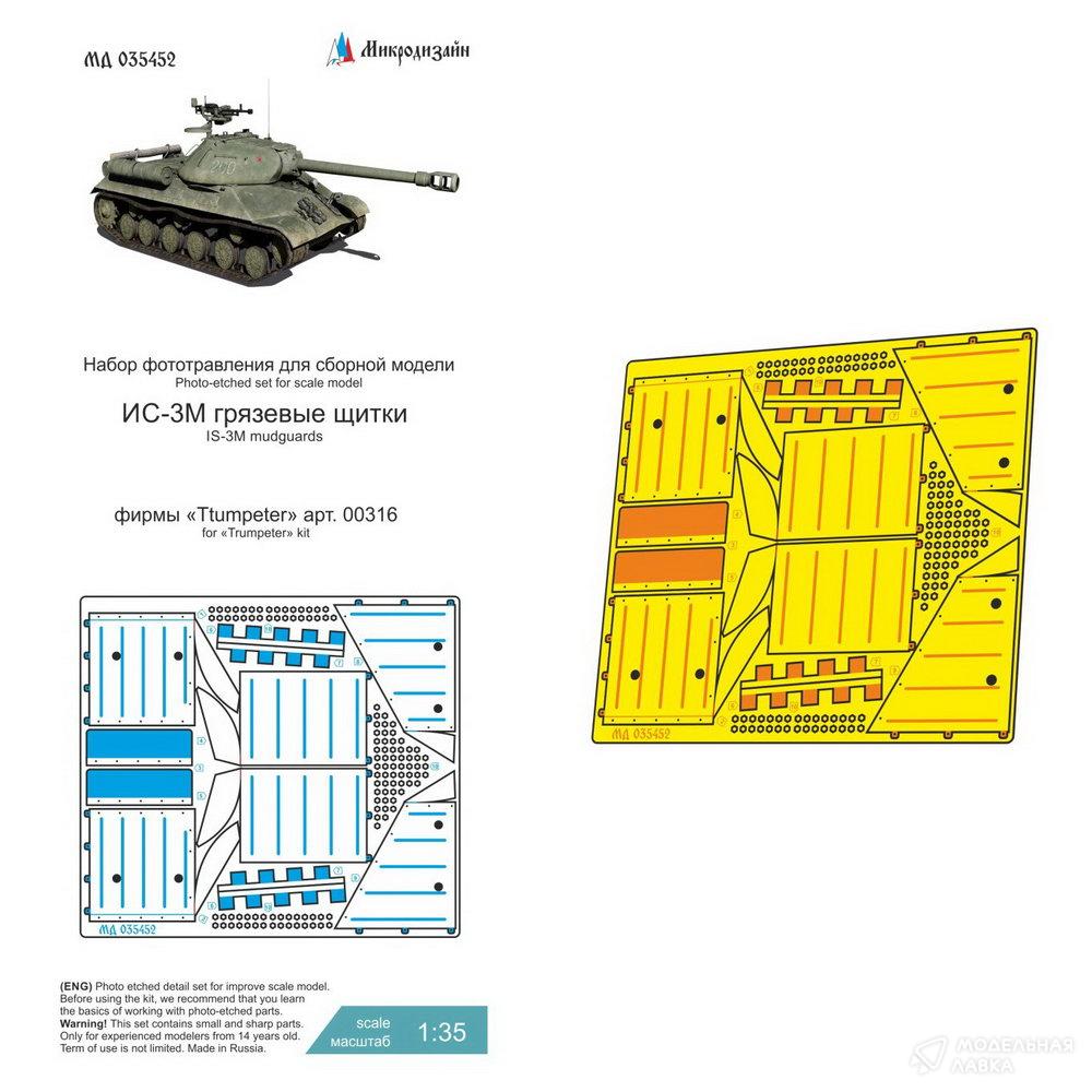 Набор фототравления грязевых щитков на ИС-3М от Trumpeter. Масштаб 1:35. Материал: латунь 0,15 мм. Набор комплектуется платой фототравления и цветной инструкцией. Количество уникальных деталей: 10. Уровень сложности - средний.