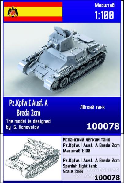 - Сборная модель испанский лёгкий танк Pz.Kpfw.I Ausf A Breda 2 cm