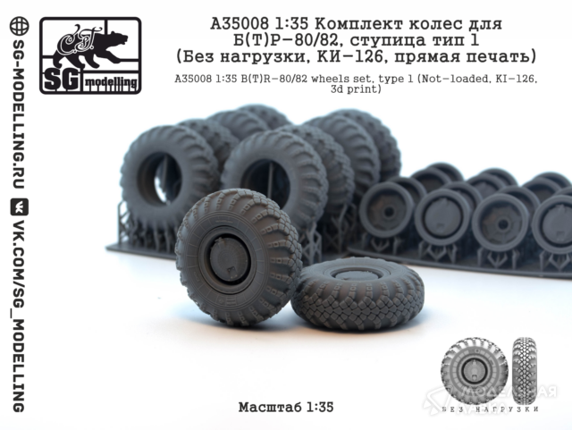 Комплект колес для Б(Т)Р-80/82, ступица тип 1 (Без нагрузки, КИ-126, прямая печать)