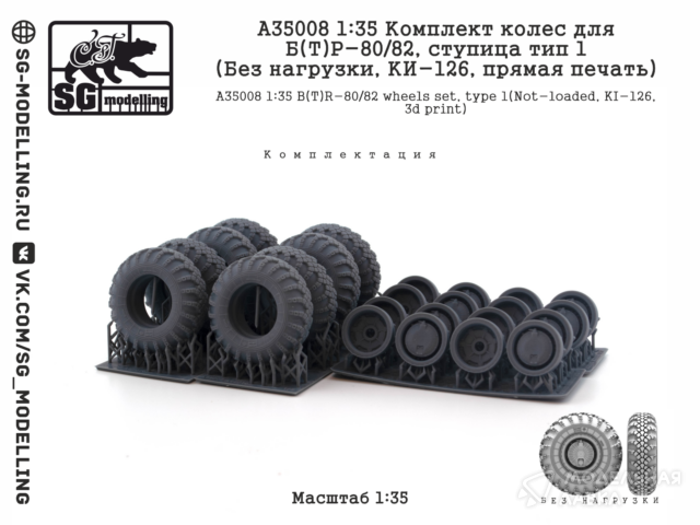 - Комплект колес для Б(Т)Р-80/82, ступица тип 1 (Без нагрузки, КИ-126, прямая печать)