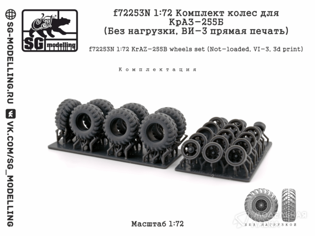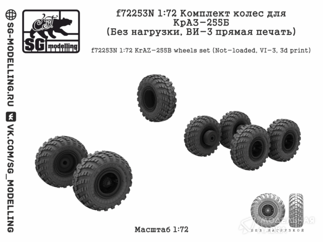 - Комплект колес для КрАЗ-255Б (Без нагрузки, ВИ-3 прямая печать)