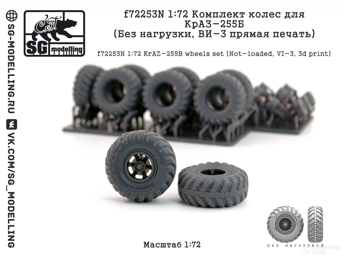 Комплект колес для КрАЗ-255Б (Без нагрузки, ВИ-3 прямая печать)