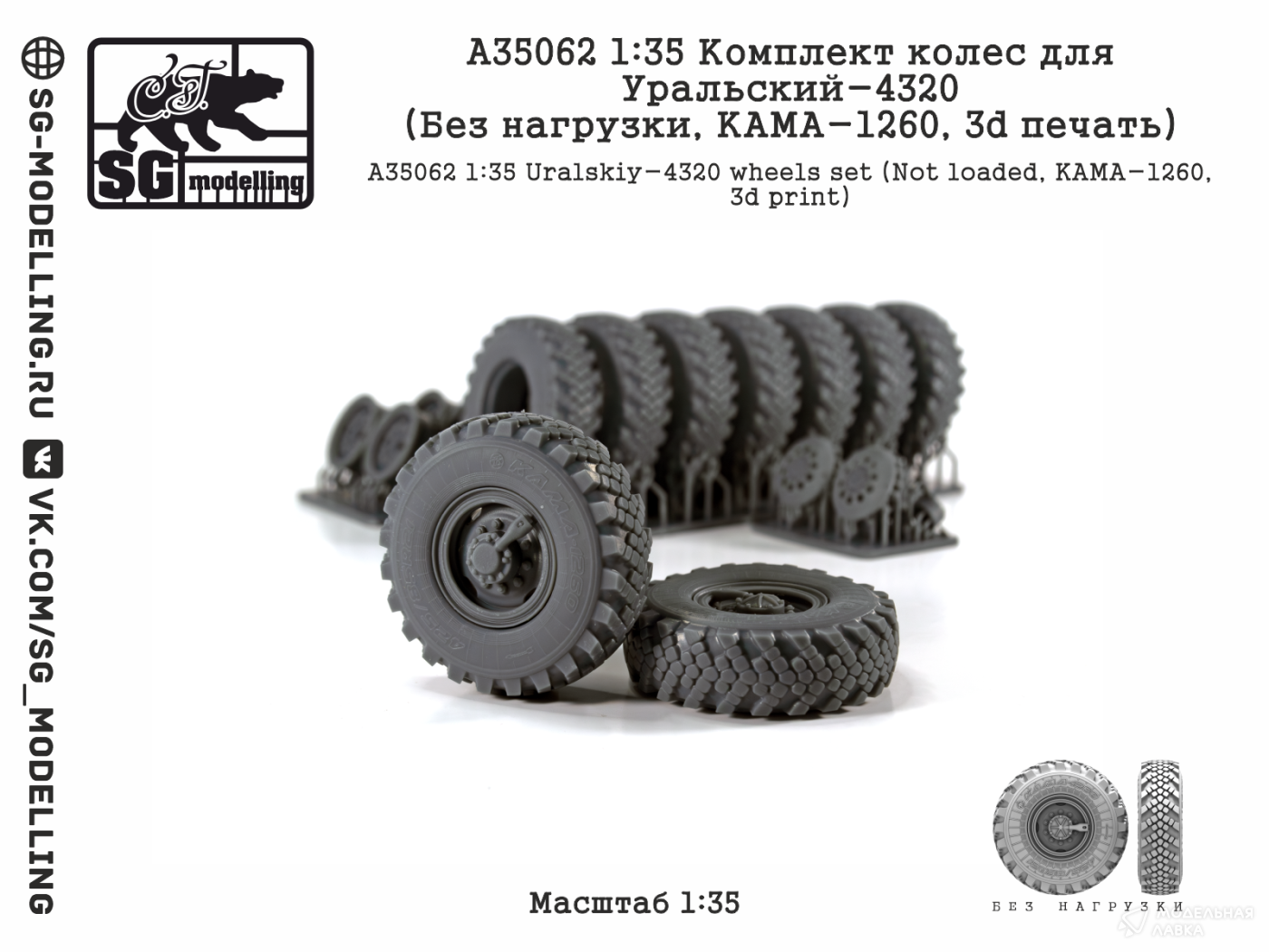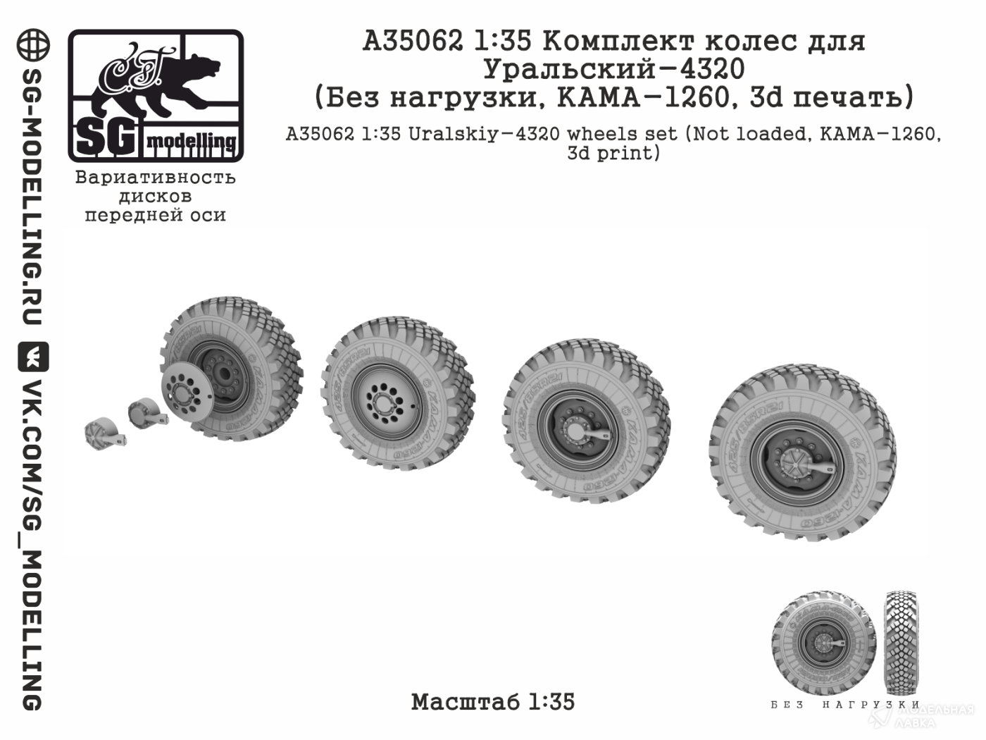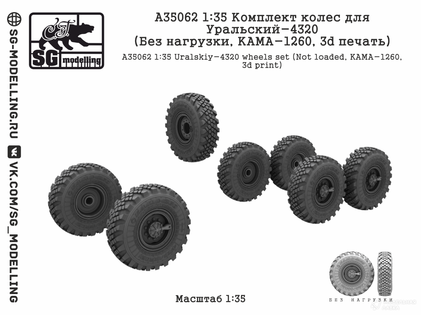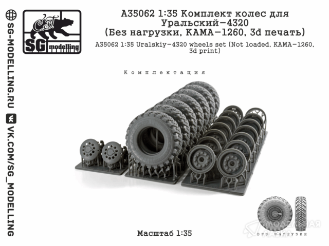 - КОМПЛЕКТ КОЛЕС ДЛЯ УРАЛЬСКИЙ-4320 (БЕЗ НАГРУЗКИ, КАМА-1260, 3D ПЕЧАТЬ)