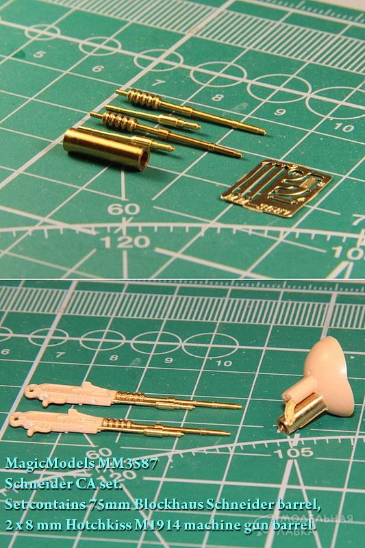 - Комплект ствола и пулеметов для Schneider CA. Набор включает: ствол 75mm Blockhaus Schneider, два ствола 8-мм пулеметов Hotchkiss M1914