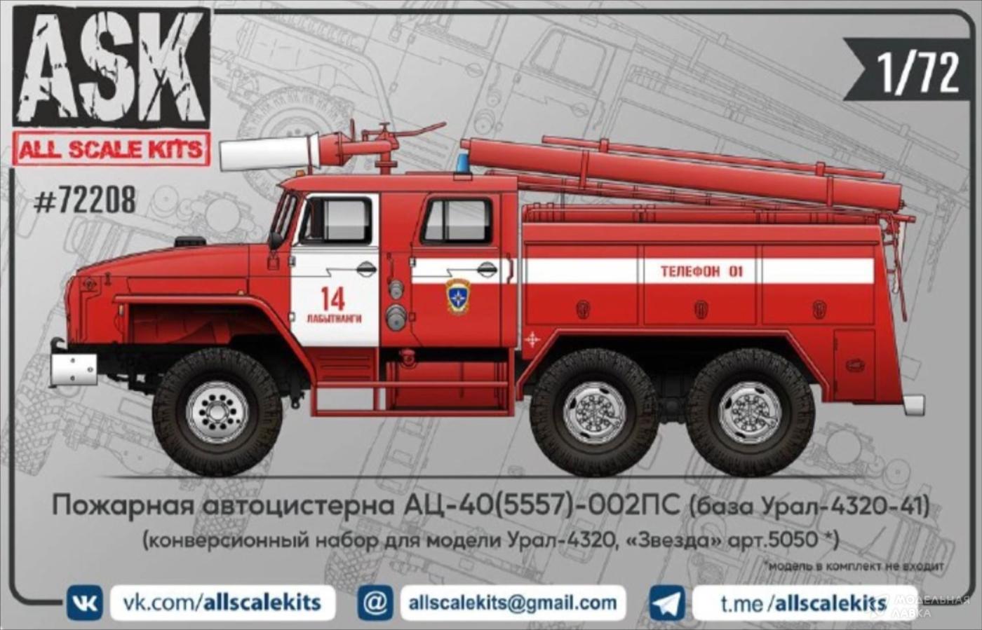 - Сборная модель конверсионный набор пожарной цистерны АЦ-40(5557)-002ПС для модели Урал-4320 от "Звезды"