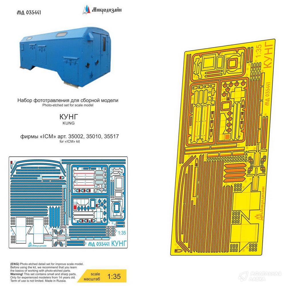 Набор фототравления для КУНГа от ICM. Масштаб 1:35. Материал: латунь 0,15 мм. Набор комплектуется платой фототравления и цветной инструкцией. Количество уникальных деталей:47 шт. Уровень сложности - средний.