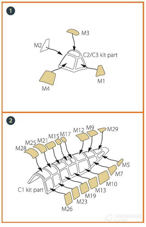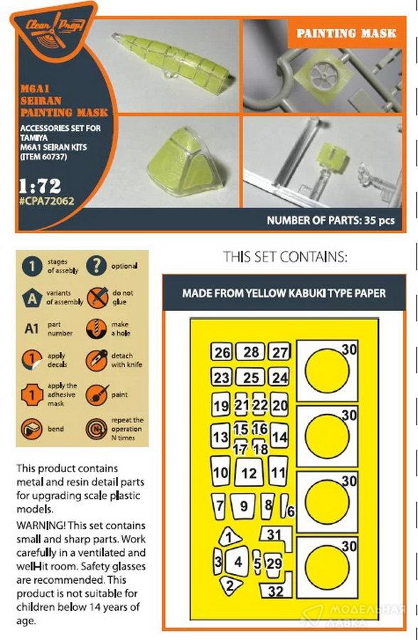 - Маска для рисования M6A1 Seiran для набора Tamiya (60737) "желтая бумага кабуки"