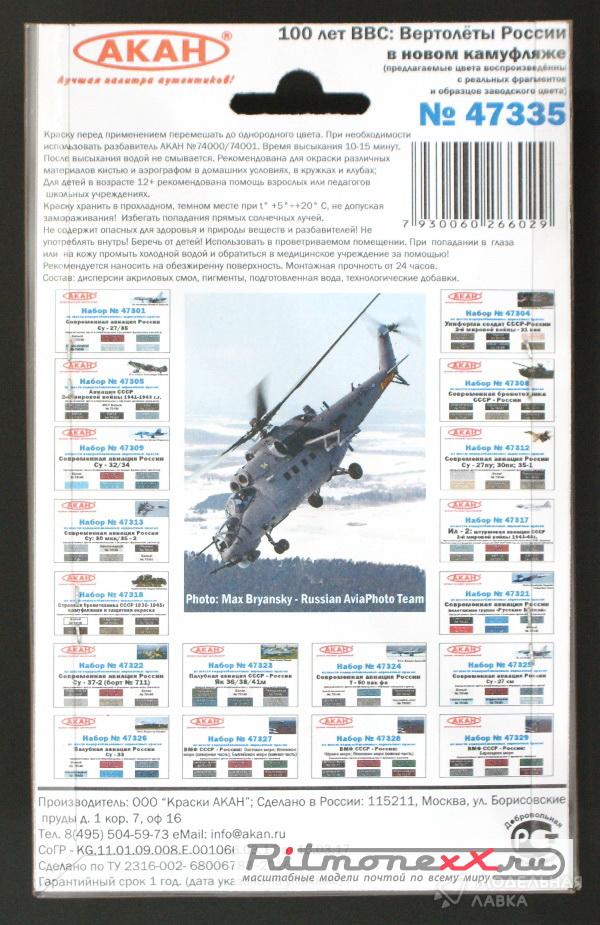 - Набор акриловых красок. 100 лет ВВС: Вертолёты в новом камуфляже (заводские образцы красок)