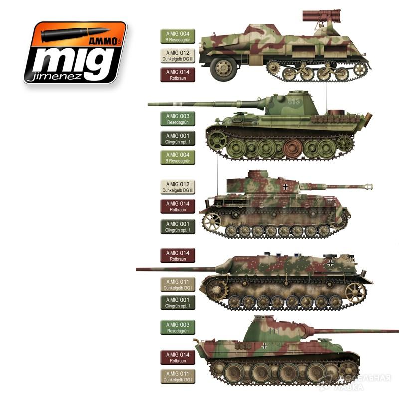 В конце 1944 года, немецкая армия ввела новые правила и новые варианты цветов, используемых для окраски своих транспортных средств. С помощью этого набора, моделист, может быстро окрасить модель своего танка из последних дней войны, без сложных смешиваний или часов интенсивных исследований.