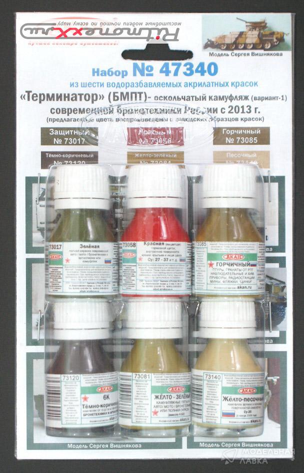 - Набор акриловых красок "Терминатор" - современная бронетехника России с 2013 года оскольчатый камуфляж - вариант 1