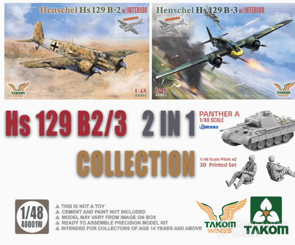 Сборная модель набор Hs129² Box - Hs 129 B2 + Hs 129 B3 + две 3D-печатные фигуры + Panther A