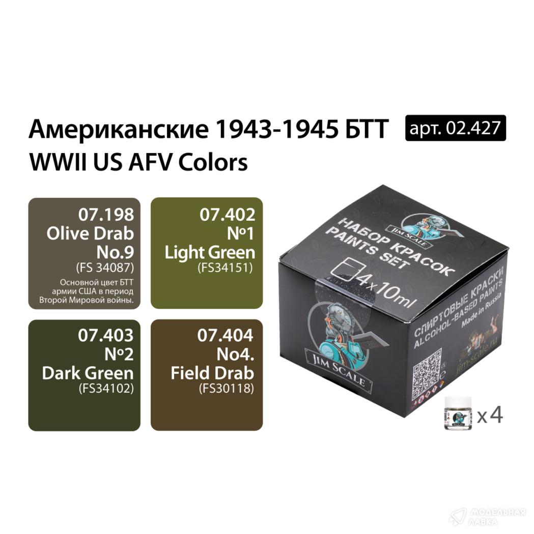 - Набор спиртовых красок Jim Scale “Американские 1943-1945 БТТ WWII”
