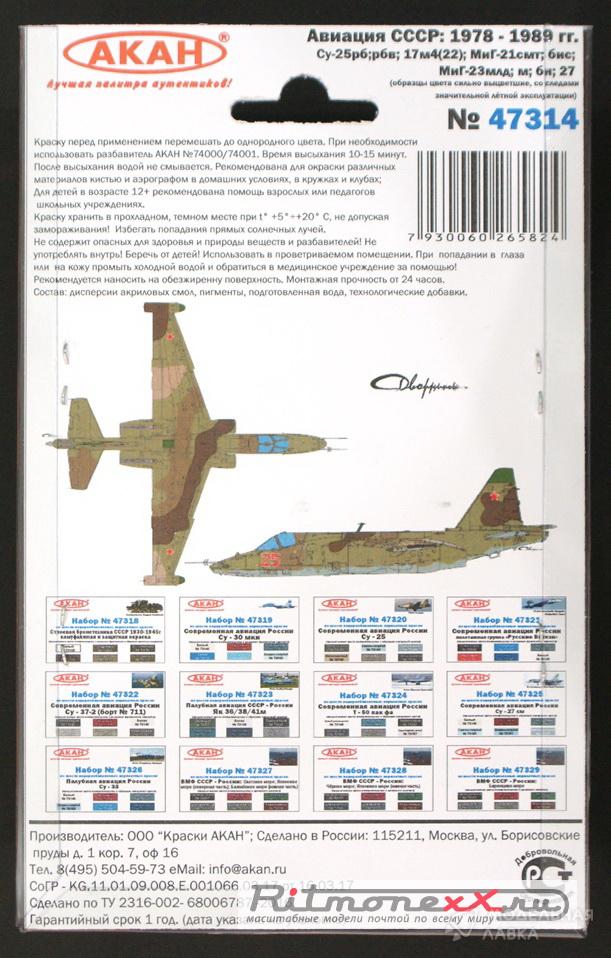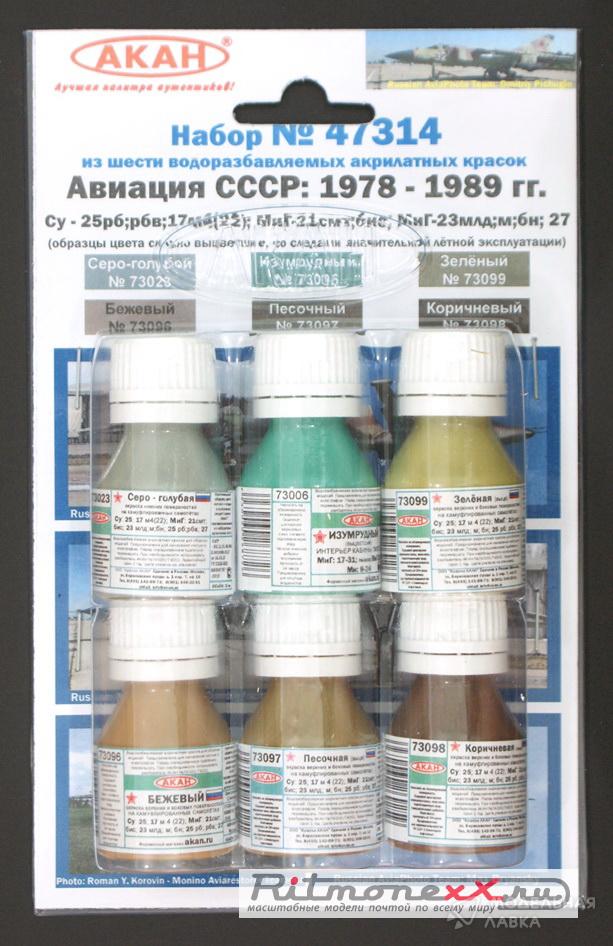 - Набор тематических красок "Авиация СССР:1978-1989гг. Суххой:25рб; РБВ;17м4(22);МиГ-21смт;бис; МиГ-23МЛД; М; БН; 27"
