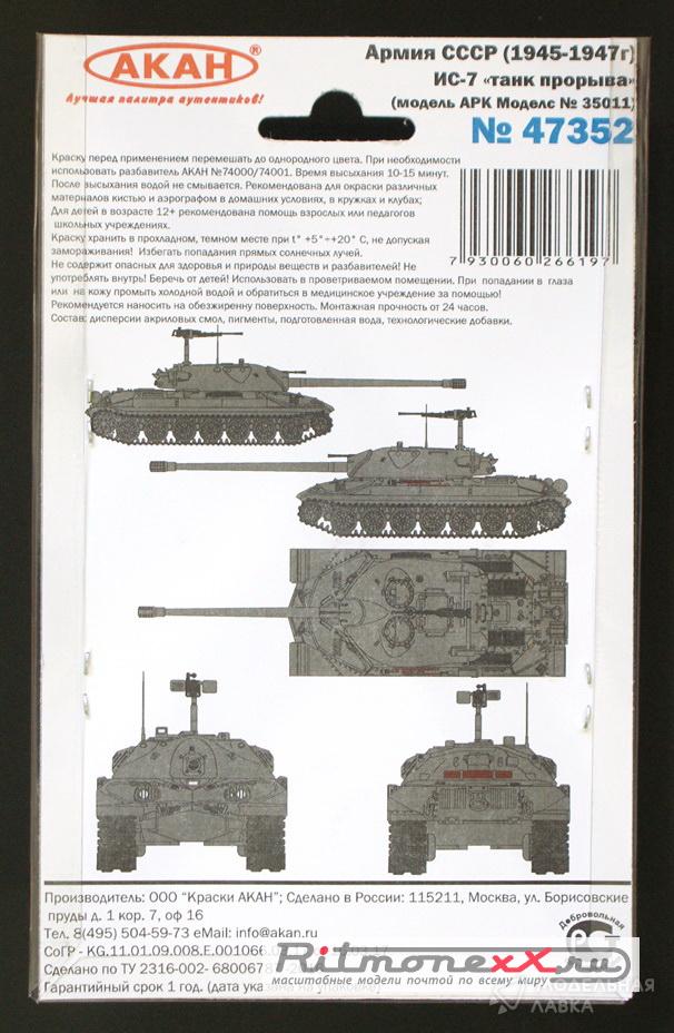 - Набор тематических красок ИС-7 "Танк прорыва" - армия СССР