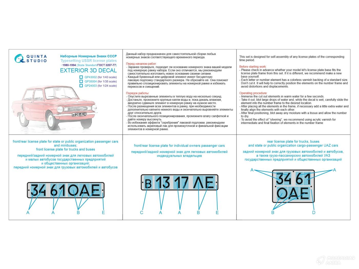 - Наборные Номерные Знаки СССР ~1980-1994 (ГОСТ 3207-77) (для всех моделей)