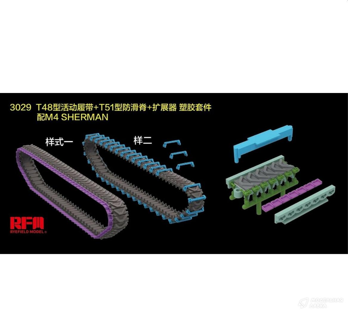- Наборные пластиковые траки серии Т-48 для М4 Sherman