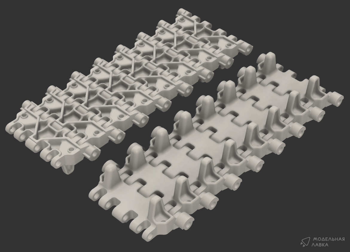 - Наборные траки на МТ-ЛБ/2С1 "Гвоздика" (тип ОМШ, ранние)