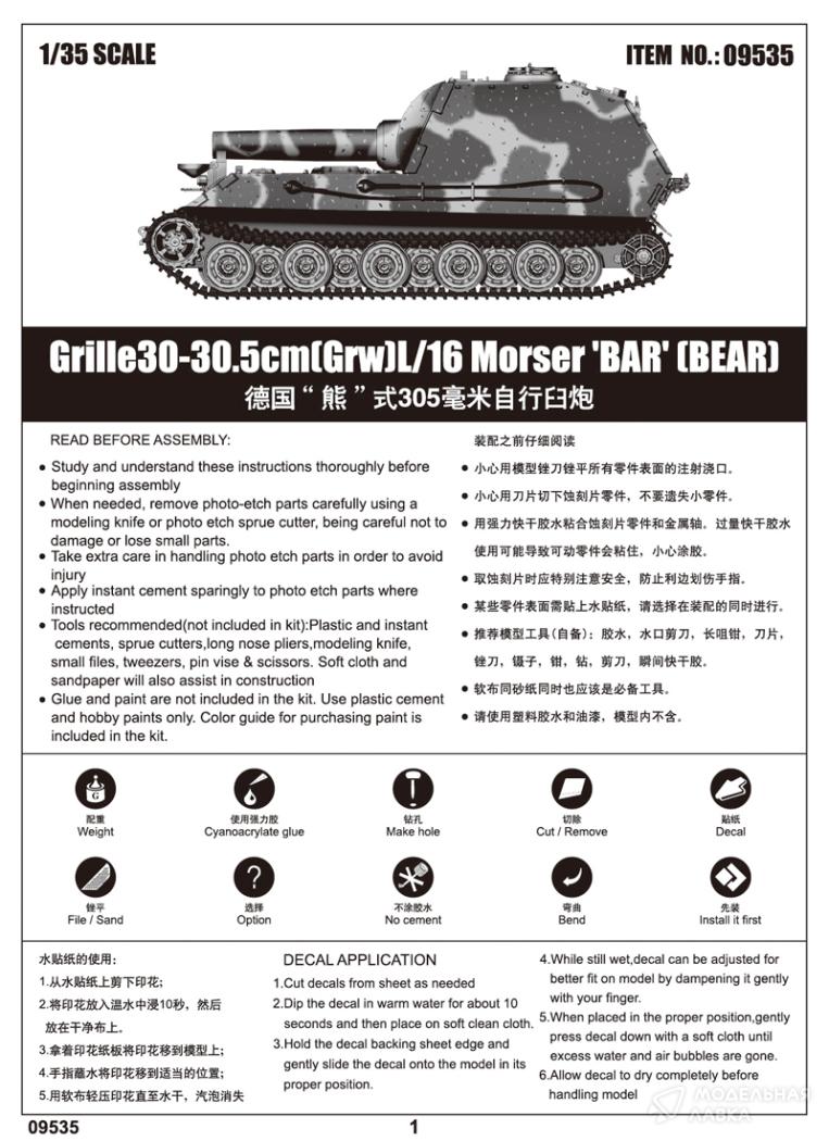 - Сборная модель немецкая САУ «Грилле» с 305 мм мортирой «Бэр»