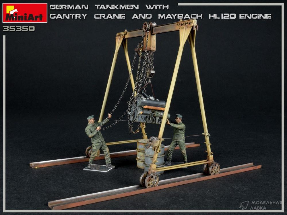 Немецкие танкисты с козловым краном и двигателем Maybach HL 120