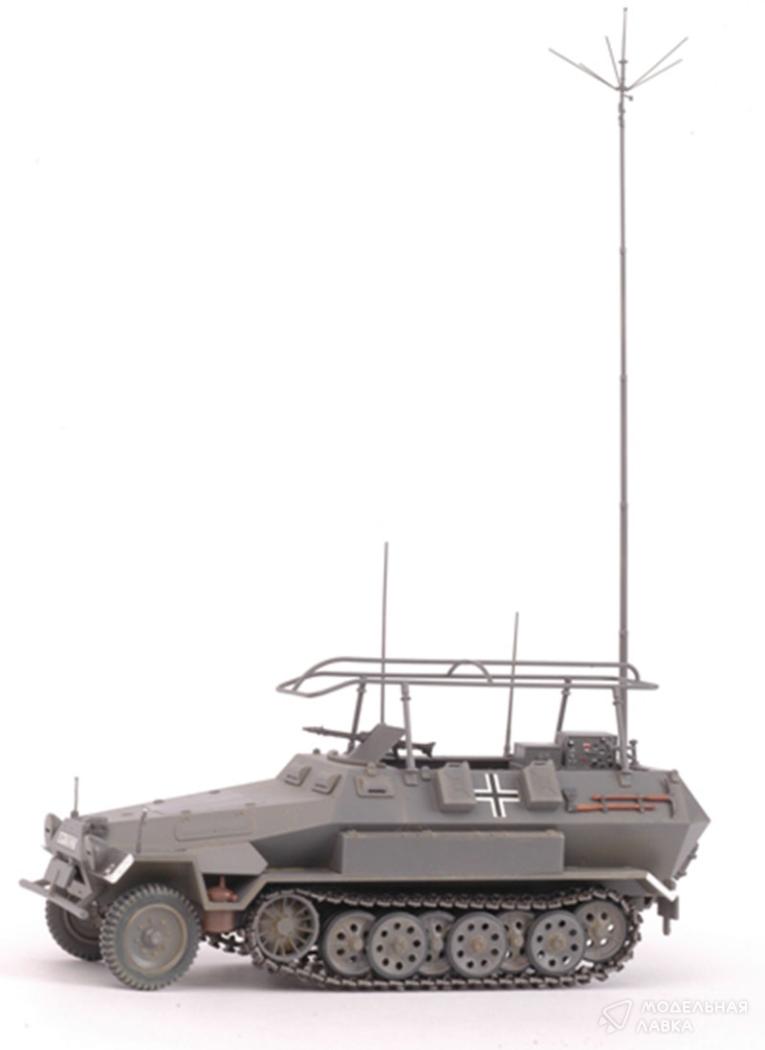 В войсках вермахта особое внимание уделялось управлению подразделениями и взаимодействию между ними. Для различных звеньев армейского управления в Германии выпускались специальные машины связи на базе полугусеничных бронетранспортеров Sd. Kfz. 251, имевших хорошую проходимость, противопульное бронирование и один-два пулемета для самообороны. В зависимости от назначения, такая машина оснащалась радиостанциями в различных комбинациях. Применялись подъемные мачтовые, штыревые и рамочные антенны. Отливки (8шт): траки(2), вооружение (2), рама (1), капот (1), корпус (1), антенна (1),Декаль (1шт) 360 деталей