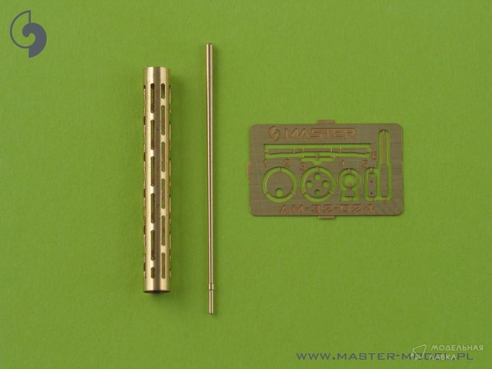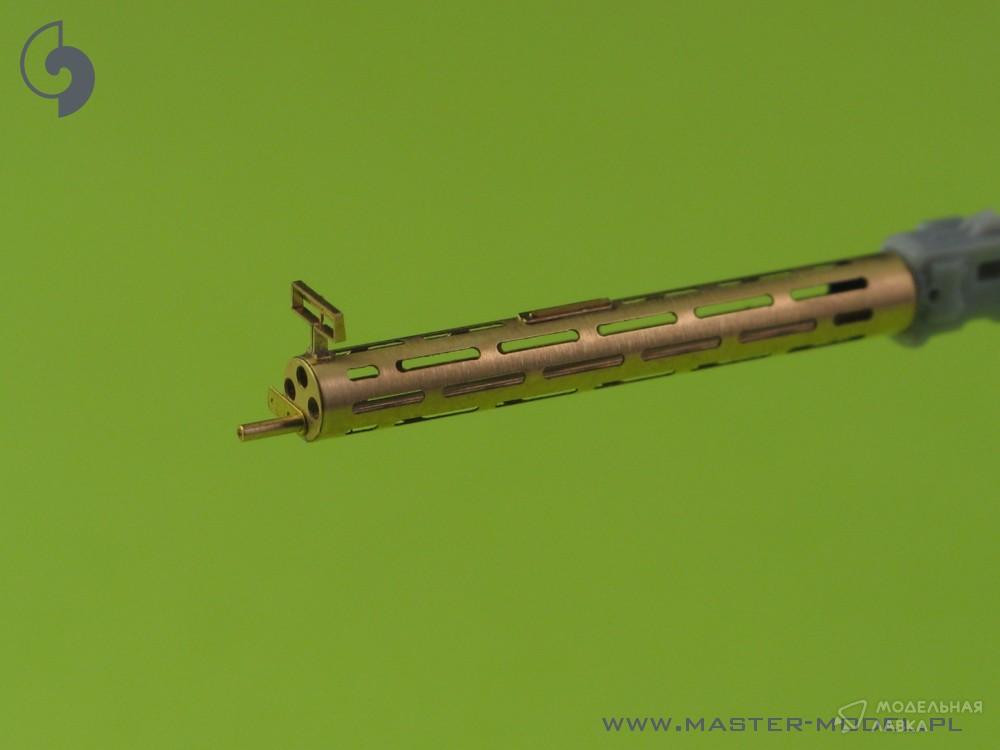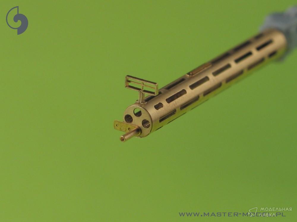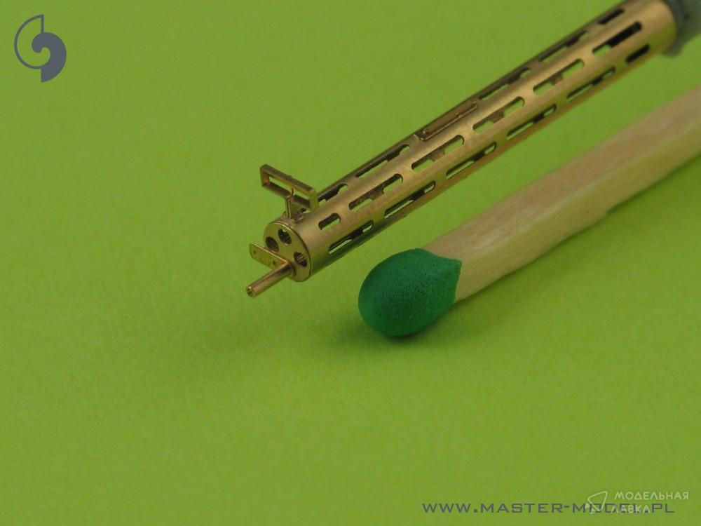 В комплекте один токарный латунный ствол с просверленным кожухом охлаждения. Его очень просто использовать в вашей модели, что делает ее чрезвычайно реалистичной. Просто отрежьте оригинальный пластиковый ствол, просверлите отверстие в оставшихся пластиковых деталях и вставьте металлический ствол, используя цианоакрилатный клей. Мы рекомендуем пайку для соединения металлических деталей.