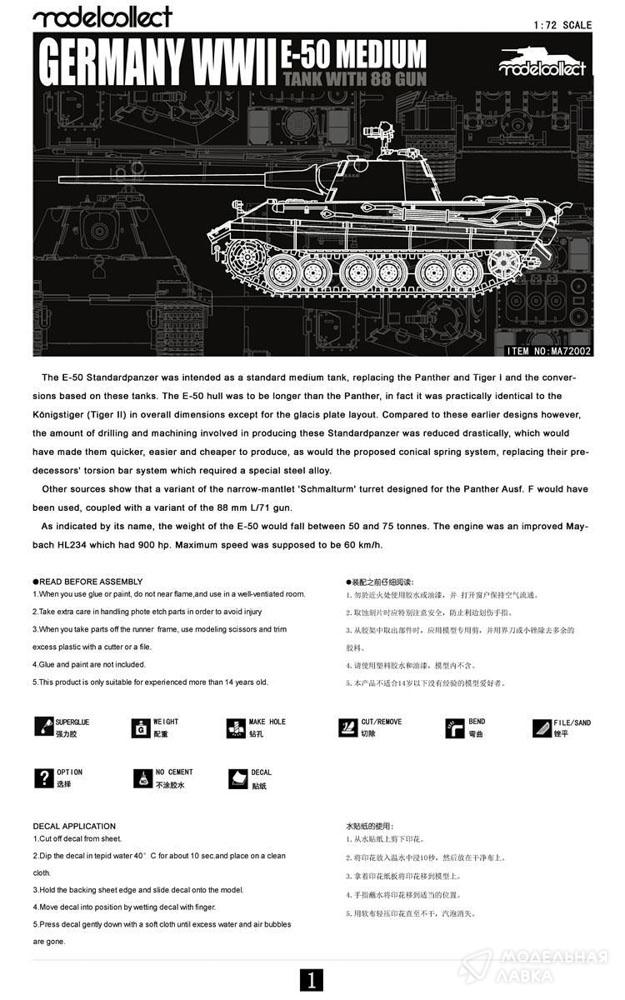- Сборная модель немецкий средний танк Е-50 с интерьером