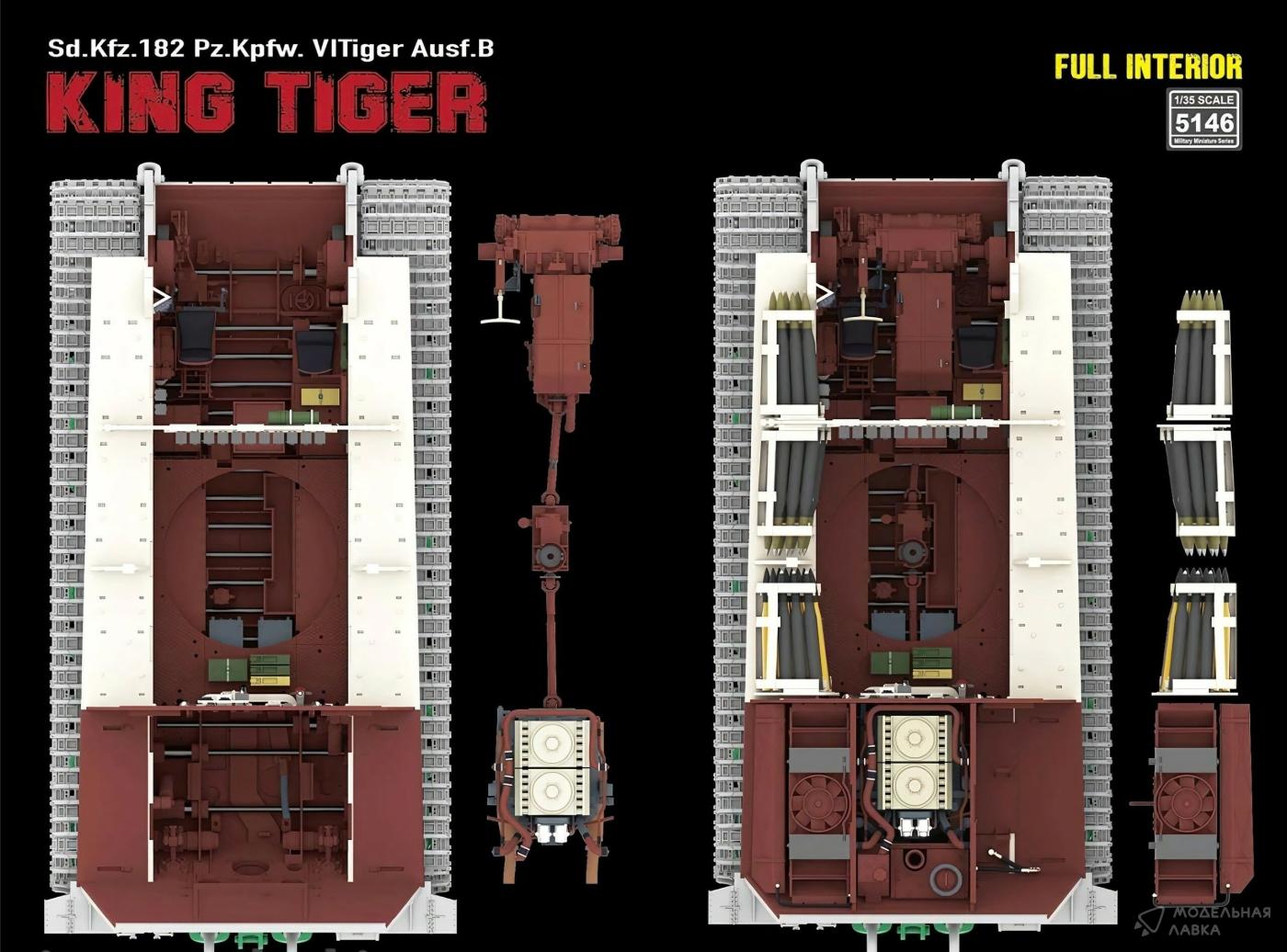 - Сборная модель немецкий танк Sd.Kfz.182 Pz.Kpfw. VI Tiger Ausf.B "King Tiger" (с полным интерьером)
