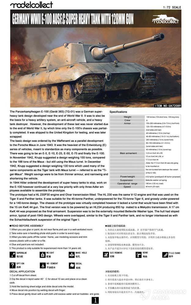 - Сборная модель немецкий тяжелый танк E-100 с 128мм орудием