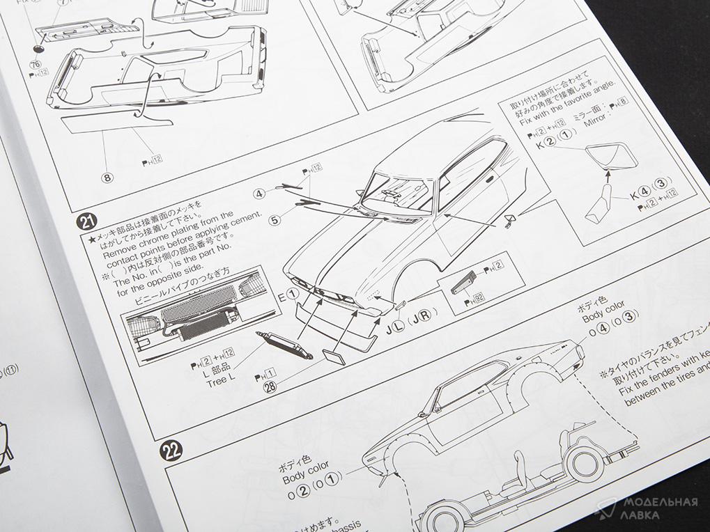 В набор входят литники с деталями для сборки одной модели, декали для нанесения на кузов, иллюстрированная инструкция на английском и японском языках.