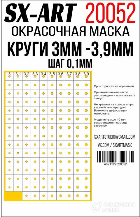 Окрасочная маска Круги 3 мм - 3,9 мм шаг 0,1 мм