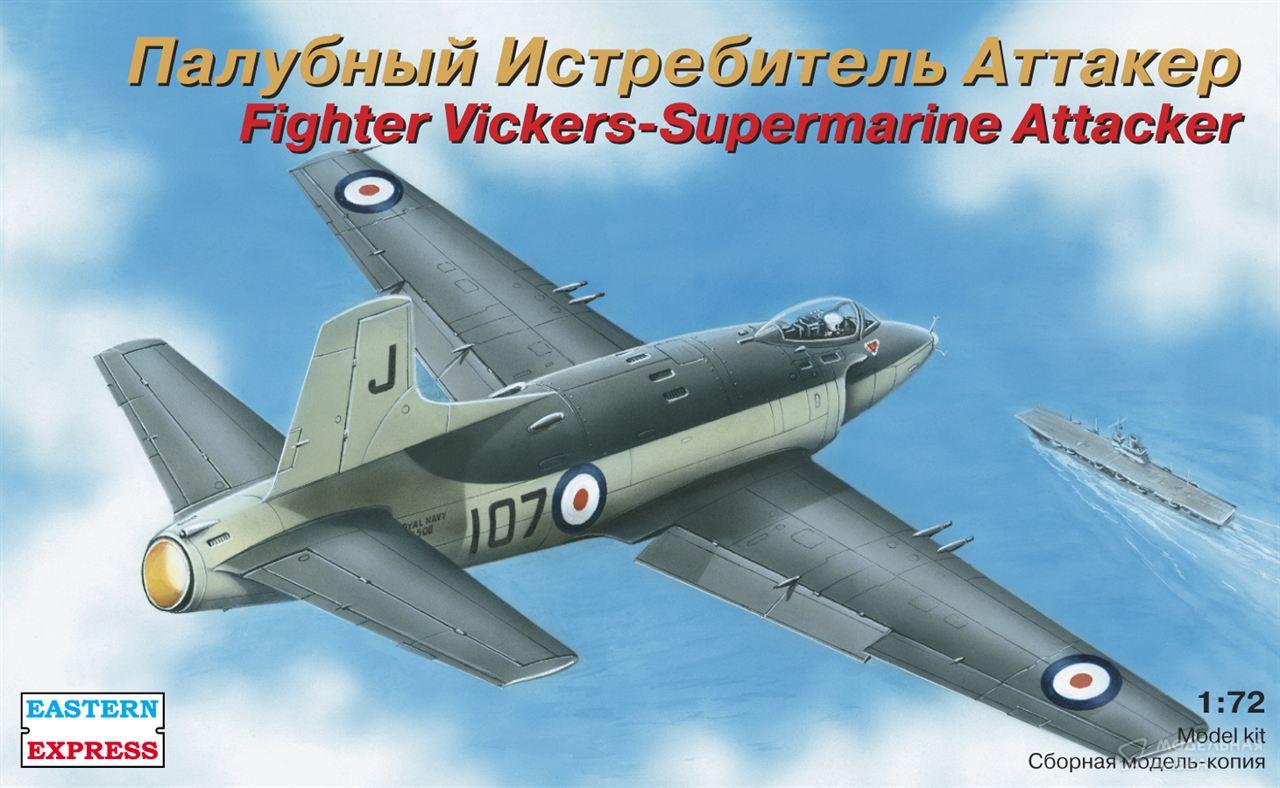 Fighter Vickers-Supermarine Attacker - первый британский серийный палубный реактивный истребитель специальной разработки. Работы по созданию Attacker начались в 1944 г. Первый полет прототип совершил летом 1946 г. После длительных испытаний и доводок, в конце 1949 г., началось серийной производство истребителя. Первая строевавя эскадрилья получила Attacker'ы в 1951 г. Всего выпущено 60 самолетов различных модификаций F Mk. 1 и 85 - FB Mk. 2. Attacker'ы несли службу на береговых базах флота и авианосце «Игл». В период с 1952-53 гг. 36 Attacker'ов были проданы Пакистану.